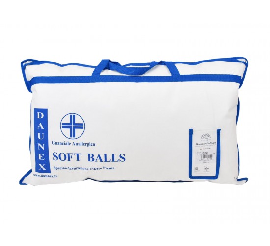 Το μαξιλάρι Softballs της εταιρίας Daunex είναι υποαλλεργικό και αποτελείται στο εσωτερικό του από 100% μικρές μαλακές σφαίρες από μικροΐνες που αναπνέουν με ειδική επεξεργασία εφέ φτερού. Το εξωτερικό του κάλυμμα αποτελείται από 100% βαμβάκι cambric 70-130 g/m2. Είναι κατασκευασμένο 100% στο Τρέντο της Ιταλίας.